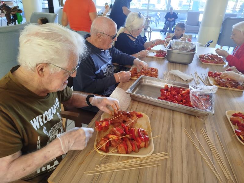 En effet, à l'occasion de la fête de la résidence, nous avons organisé un atelier cuisine participatif pour préparer le repas sur le thème Western. Nos résidents ont alors enfilé leur tablier de cuisinier du saloon pour préparer des roulés aux saucisses, des minis hot dog et des brochettes de poulet.