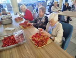 Les résidents étaient ravis de pouvoir participer activement à la fête en préparant eux-mêmes une partie du repas. Une manière de rester acteurs de la vie de l’établissement, et de transmettre leur savoir-faire culinaire avec fierté.