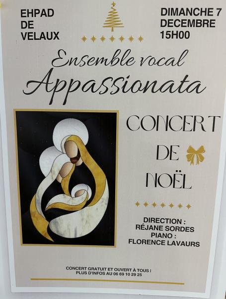 Nous avons la chance à l'EHPAD l'Arbois d'accueillir dimanche 7 décembre à partir de 15H, l'ensemble vocal Appassionata sous la direction de Régine SORDES pour leur concert de Noël.