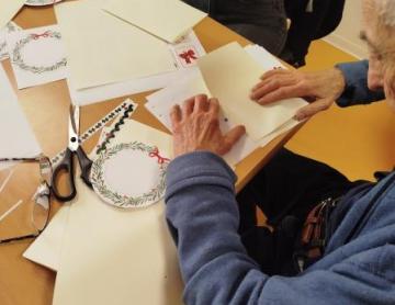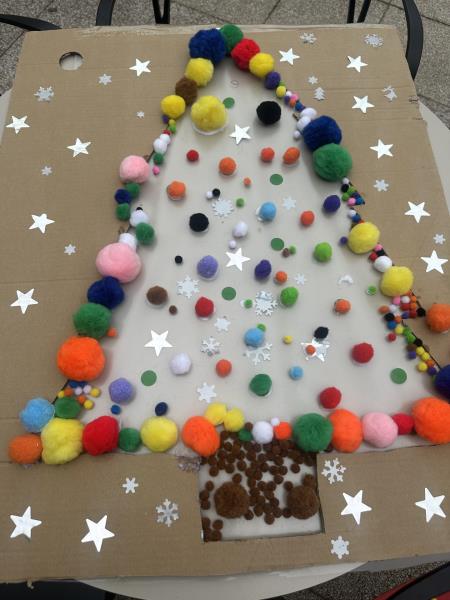 L'atelier cartes de vœux c'est transformé finalement en décoration de Noël. Un vrai travail intergénérationnel conclut par le partage de crêpes.