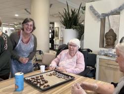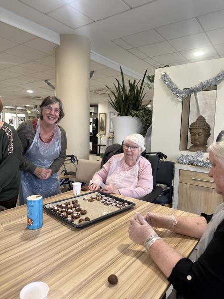 Après la cuisson, l’atelier s’est prolongé autour d’une dégustation festive. Les résidents ont savouré les traditionnels Maeneles, de petits bonshommes en brioche associés à la Saint-Nicolas, dans une ambiance douce et conviviale. Les sourires, les échanges et la bonne humeur ont fait de cette journée un véritable moment de partage et de souvenirs.