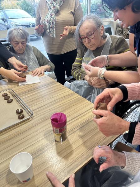 Les résidents ont eu le plaisir de mettre la main à la pâte pour confectionner de délicieux Bredeles, ces petits gâteaux typiques de Noël dont les parfums de cannelle et de vanille ont embaumé l’établissement. Chacun a pu participer selon ses envies : découper, façonner, décorer…